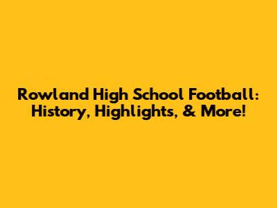 Rowland High School Football: History, Highlights, & More!