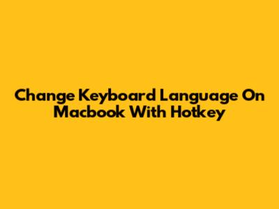 Change Keyboard Language On Macbook With Hotkey