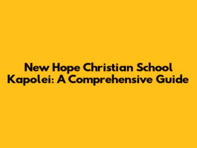 New Hope Christian School Kapolei: A Comprehensive Guide
