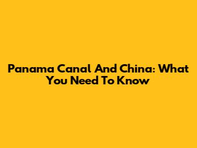 Panama Canal And China: What You Need To Know