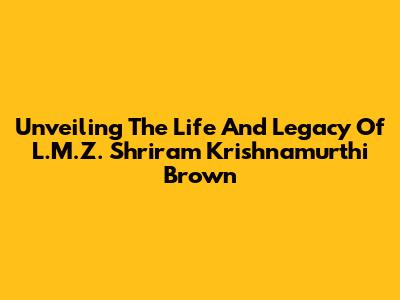 Unveiling The Life And Legacy Of L.M.Z. Shriram Krishnamurthi Brown