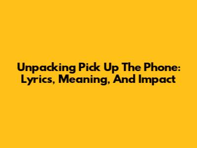 Unpacking 'Pick Up The Phone': Lyrics, Meaning, And Impact