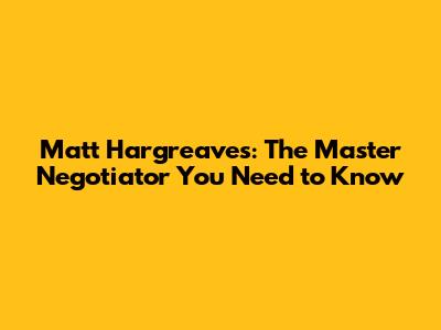 Unfortunately, without specific details about the chief negotiator Matt Hargreaves, we can only speak generally about the role and the qualities that make someone successful in it. However, if you're looking to learn more about negotiation, there are many resources available. Books, articles, courses, and workshops can all provide valuable insights into the art and science of negotiation. And by studying the strategies and tactics of successful negotiators, you can develop your own skills and become a more effective negotiator in your own life.