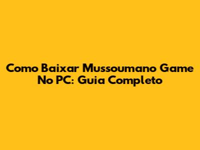Como Baixar Mussoumano Game No PC: Guia Completo