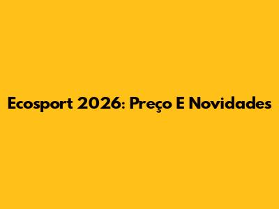 Ecosport 2026: Preço E Novidades