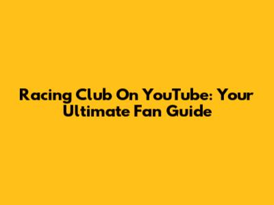 Racing Club On YouTube: Your Ultimate Fan Guide