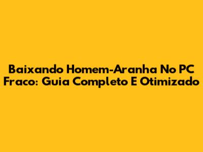 Baixando Homem-Aranha No PC Fraco: Guia Completo E Otimizado