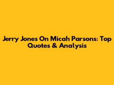 Jerry Jones On Micah Parsons: Top Quotes & Analysis