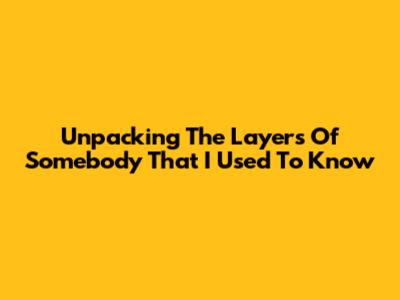 Unpacking The Layers Of 'Somebody That I Used To Know'